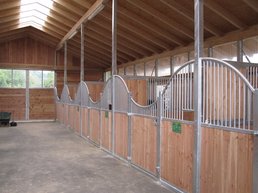 Für die Pferdebox "Nordsee" werden "Standard"-Trennwände mit senkrechtem Gitter verwendet. Diese sind 2,30 m hoch, wovon der Holzteil 1,30 m ausmacht.