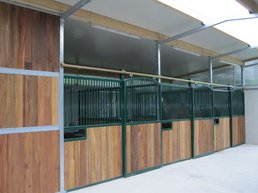 Für die Pferdebox "Venedig" werden "Standard"-Trennwände mit senkrechtem Gitter verwendet.