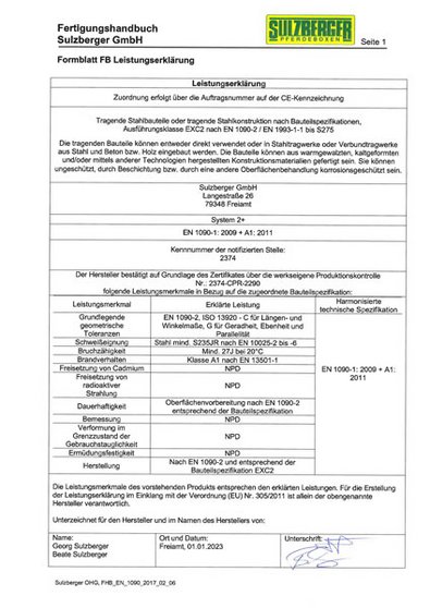 Zertifiziert nach EN 1090 Download: Leistungserklärung